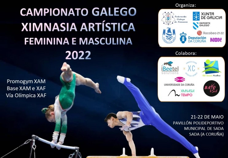Mañana sábado 21 de mayo y domingo 22 de mayo se celebrará el Campeonato Gallego GAF – GAM de las categorías Promogym GAM, Base GAM-GAF y Vía Olímpica de artística femenina. El Polideportivo Municipal de Sada es en esta ocasión el escenario elegido para esta competición que reúne a más de 150 gimnastas y que es antesala de los próximos Campeonatos de España.