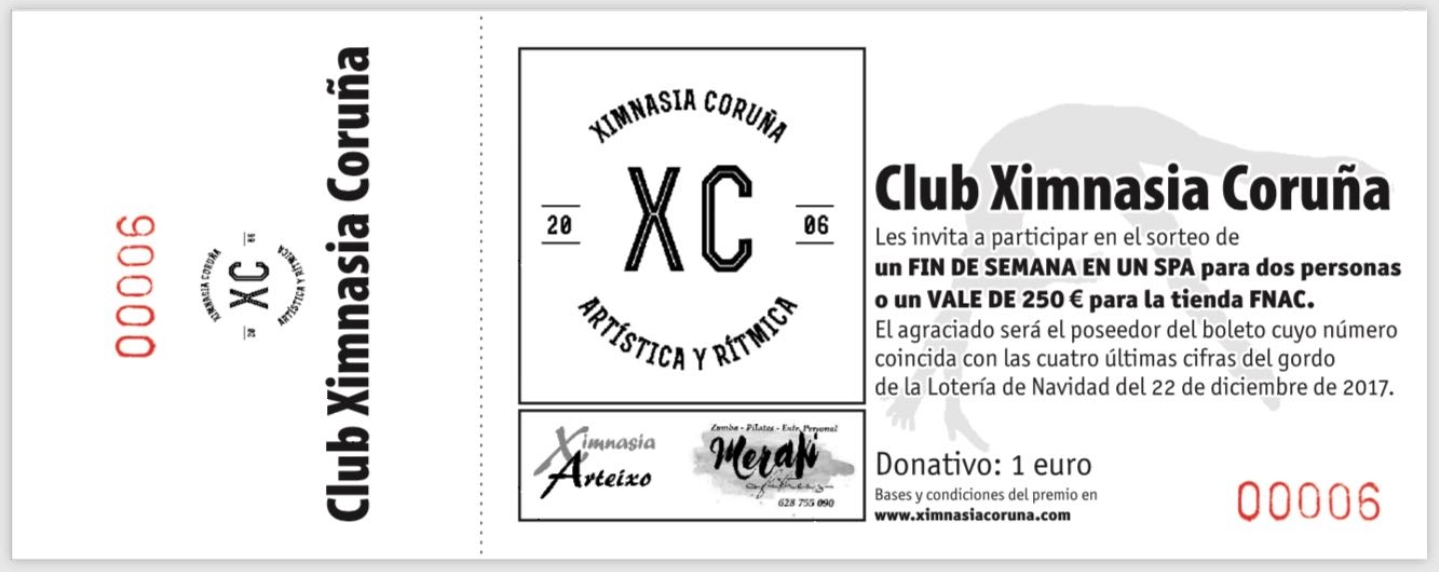 Como todos los años, el club Ximnasia Coruña pone a la venta rifas de Navidad cuyo destino de fondos será utilizado íntegramente para equipamiento del club.